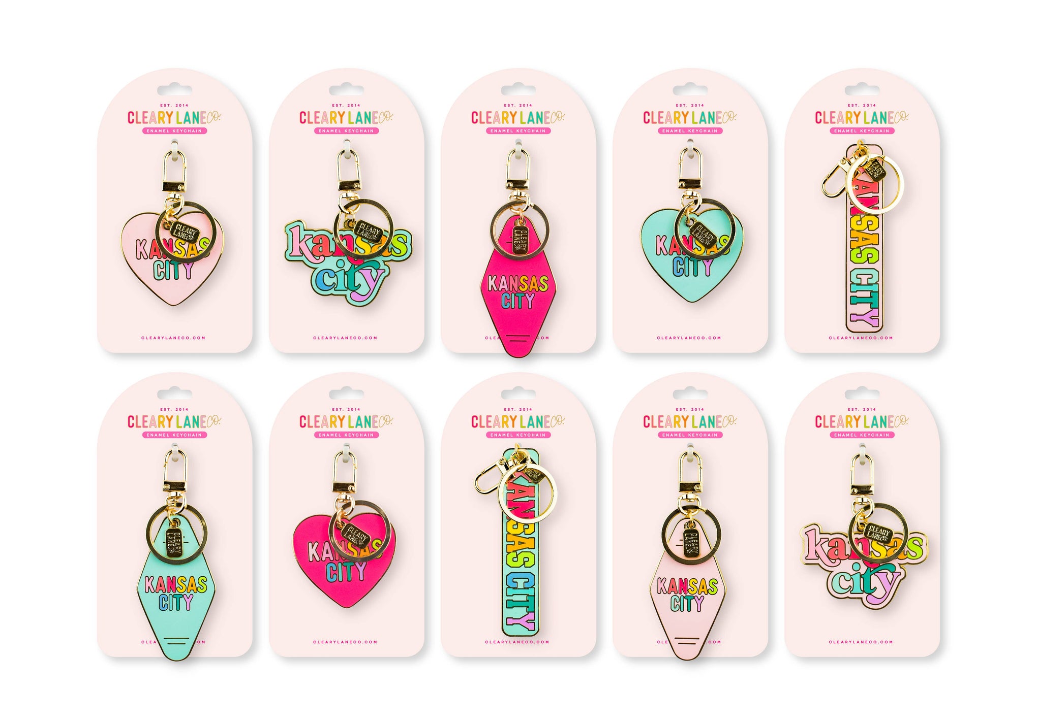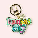 Kansas City Rainbow Enamel Keychains: Hot Pink Heart
