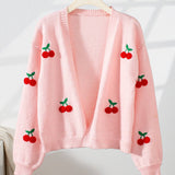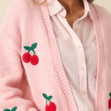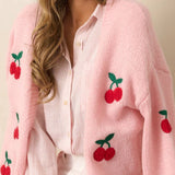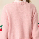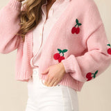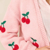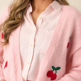 Cherry Embroidery Pink Sweater Cardigan