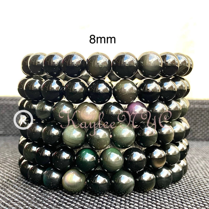 Natural Obsidian 7mm 7.5” Stretch Bracelet. Rainbow Obsidian require direct light to see their true colors. Colors may not show up under normal lighting. Condition is New.